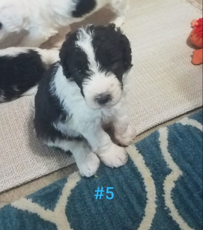 Standard Sheepadoodle puppies for sale. 2 females 2 males available. Born 11/30/25. Sweet calm puppies. Both Parents Standard Sheepadoodles F1. Mom and puppies in Port Lavaca Texas. 361 920 6601